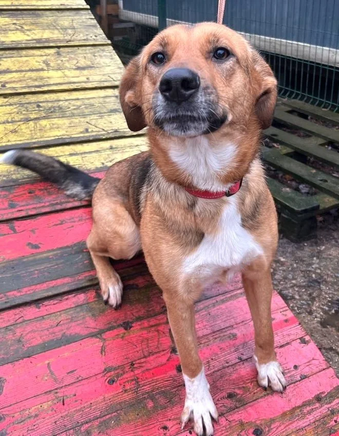 Alisa is the perfect mix of happy, smart, and wonderfully easygoing. She walks nicely on a leash, rides calmly in the car, and picks up new things fast. She’s brave, confident, and always ready for fun — no fear, no aggression, no guarding, and zero prey drive. She’s affectionate, social, and loves being part of the action. She’s the type of dog who blends in anywhere and makes every day brighter.