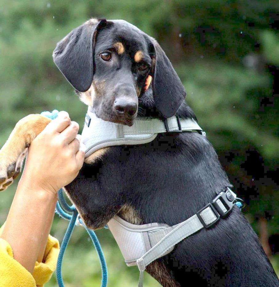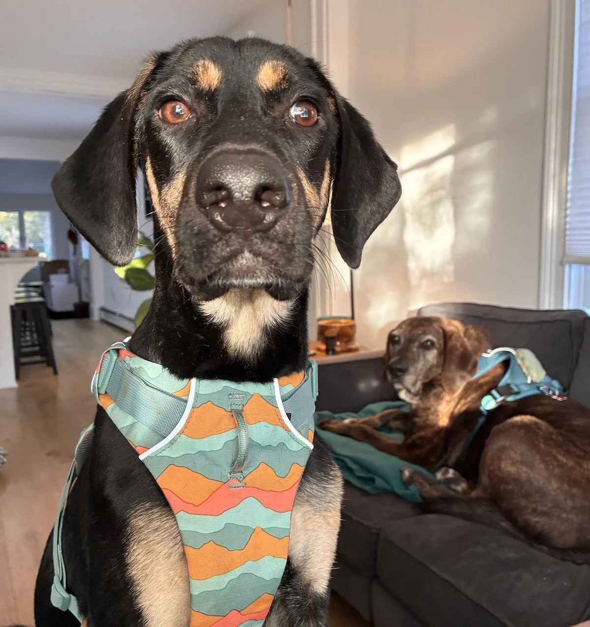 He’s also very smart: Doby learned sit and down in no time and has great recall—he comes when called by name or with the come command. He loves his stuffed toys, especially the smaller ones, and will happily toss them around for himself and he’s fetch pro: chase, retrieve, drop, then a hopeful wag for one more throw.