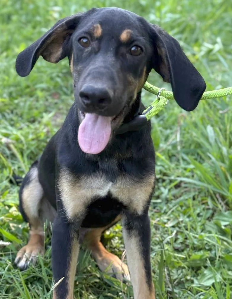 He gets along with other dogs, doesn’t mind cats, and gets along even with chickens! He’s house-trained, walks nicely on a leash, and is good in the car. With his soft, floppy ears and charming personality, he’s as elegant as he is sweet. When fully grown, he’ll be a medium-sized dog.