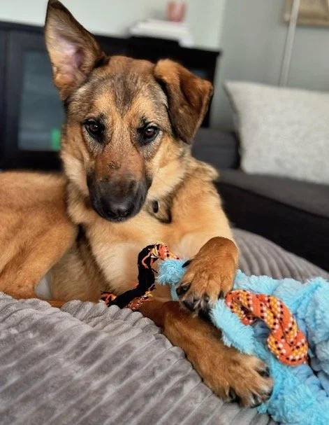 Lucy isn't one to laze around—she's all about outdoor adventures! She's ready for walks, exploring, and new experiences. Lucy also loves playing with toys and other dogs, so if you have a dog at home, they'll be best friends.