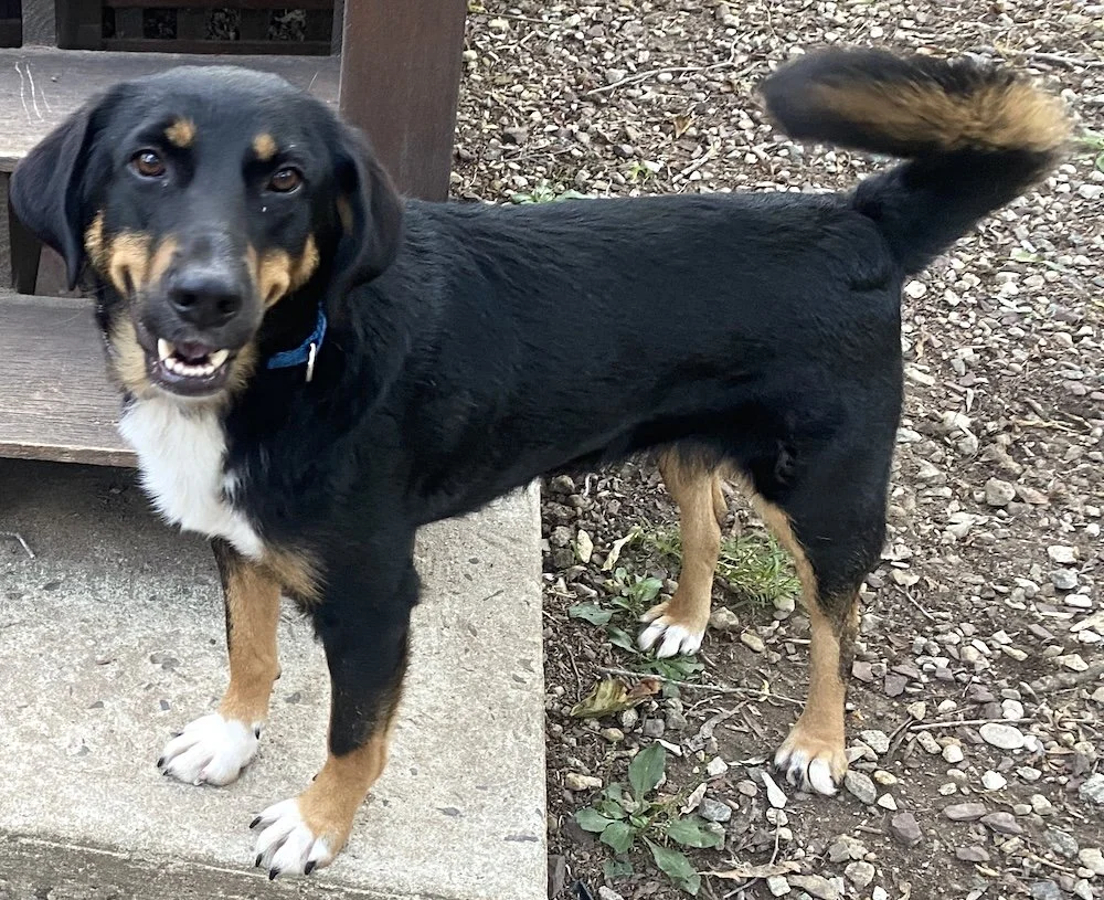 May is completely house-trained, quiet at home, and sleeps well through the night. She is smart and attentive, and is a great listener who quickly understands what you want. She doesn’t guard toys, food, or attention. She is calm and gentle, loves being petted, but she’s also a shy girl and will need time to settle in and feel comfortable in a new home and with new people. She’ll need a loving human to help build her confidence through gentle encouragement. We believe she’ll do best in a home with a fenced yard and another friendly dog.