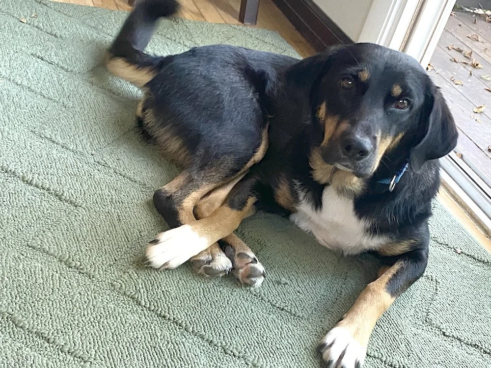 May is smart, attentive, and a bit independent. She won’t bother you if you’re busy and will patiently wait for her turn to go on a walk. She is also calm and gentle, but she is a shy girl and needs some time to feel comfortable in a new home and around new people. She’ll need a loving human to help build her confidence through gentle encouragement. We believe she’ll do best in a home with a fenced yard and another friendly dog.