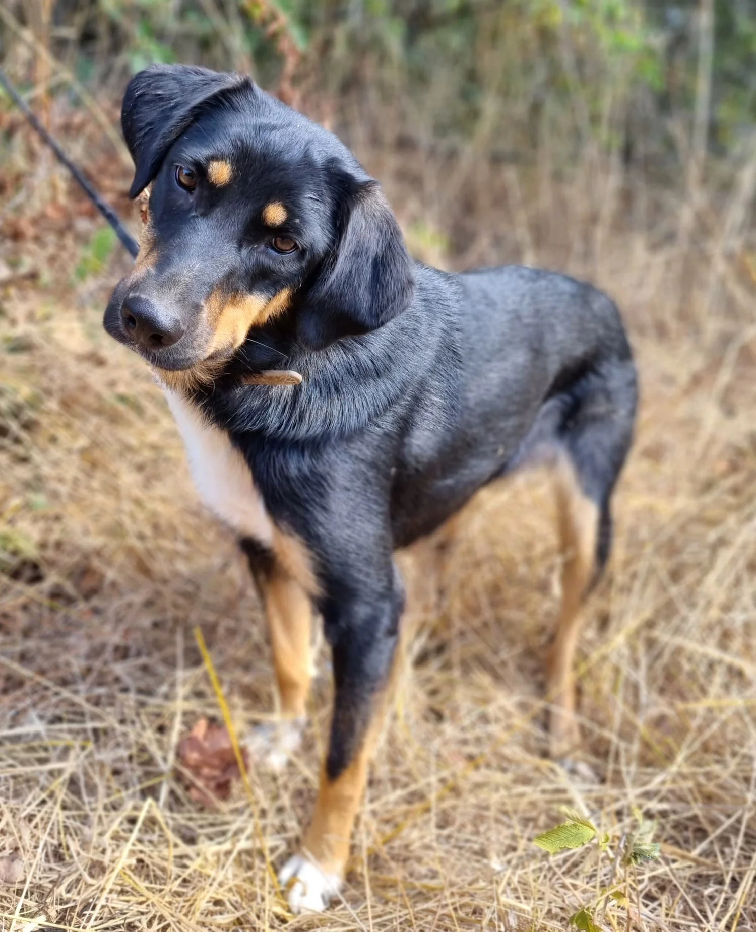 May walks beautifully on a leash, has no prey drive, and is an absolute pleasure to walk. She is the perfect walking buddy you’ve been dreaming of! She also rides very well in the car. She has adorable floppy ears, a kind smile, and a perfect medium size—easy to handle at home and on walks.