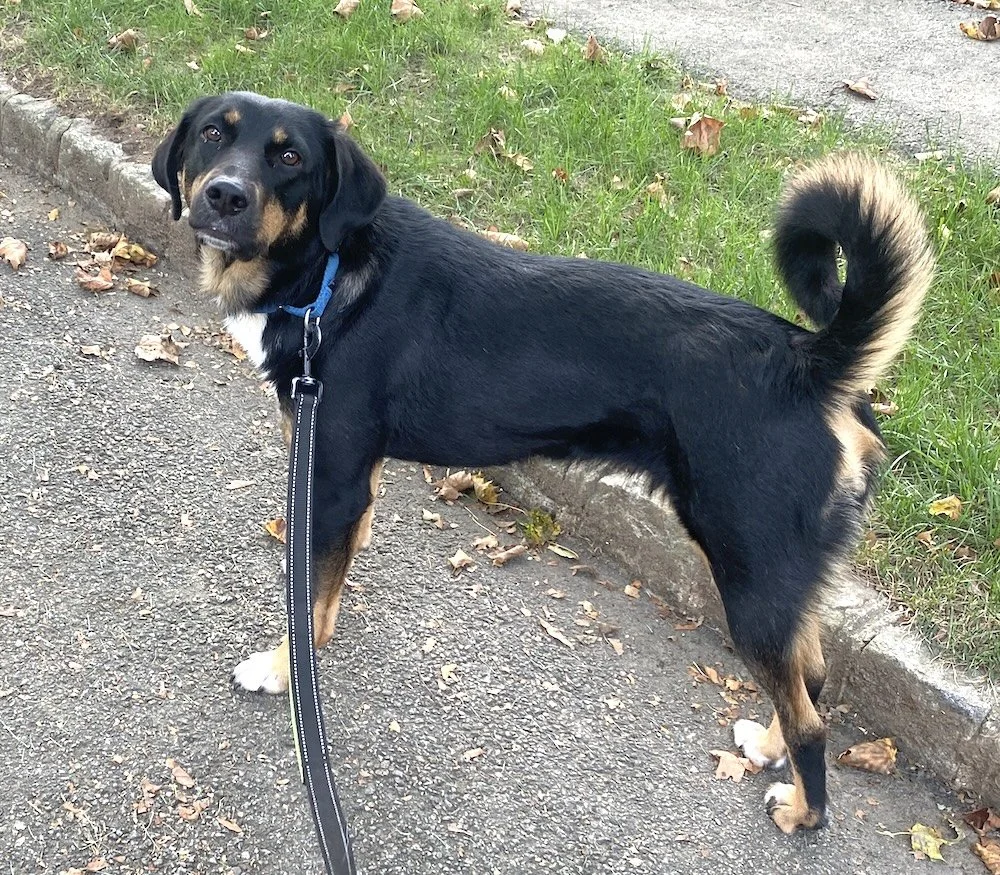 May walks beautifully on a leash, has no prey drive, and is an absolute pleasure to take out—your perfect walking buddy! She also rides wonderfully in the car. May is house-trained, quiet, and sleeps soundly through the night. When she’s happy, she turns into a little dancer: her whole body wiggles, and her curled tail joins the show!