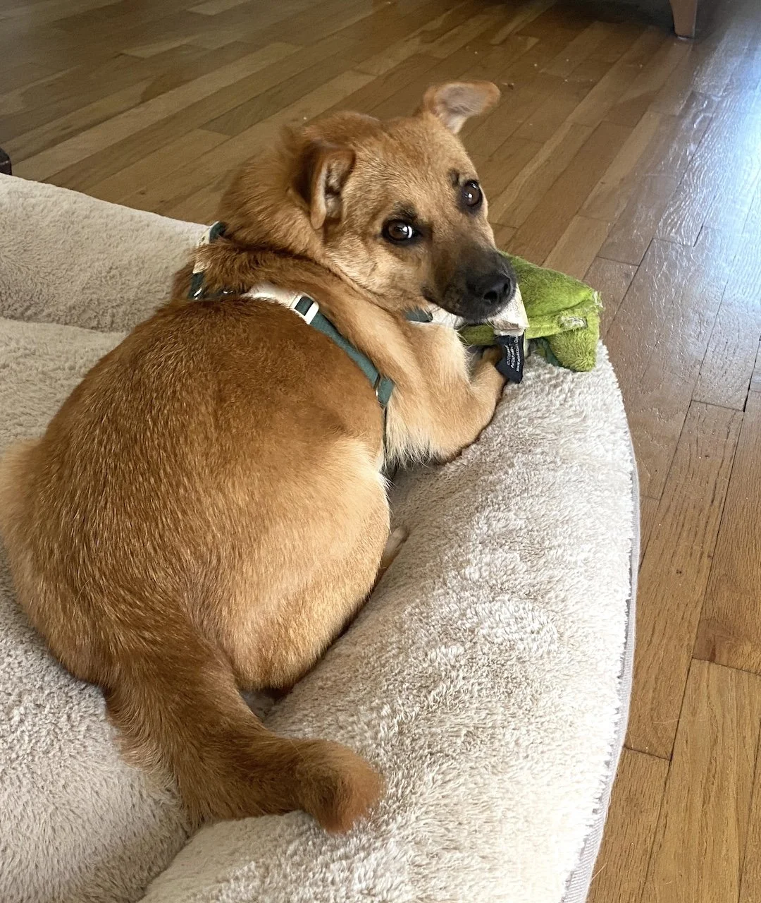 Millie walks nicely on a leash and comes when you call her. She also loves chasing a ball and will even bring it back. On walks, she’s happy to meet other dogs and people. She gets along well with other dogs but doesn’t like being in a big pack—she prefers her space and a quieter vibe. She really loves attention and can get a little jealous if another dog is getting all the love, so she might do best as the only dog or with a calm furry friend who respects her space. She would be happy to share a home with cats, though!