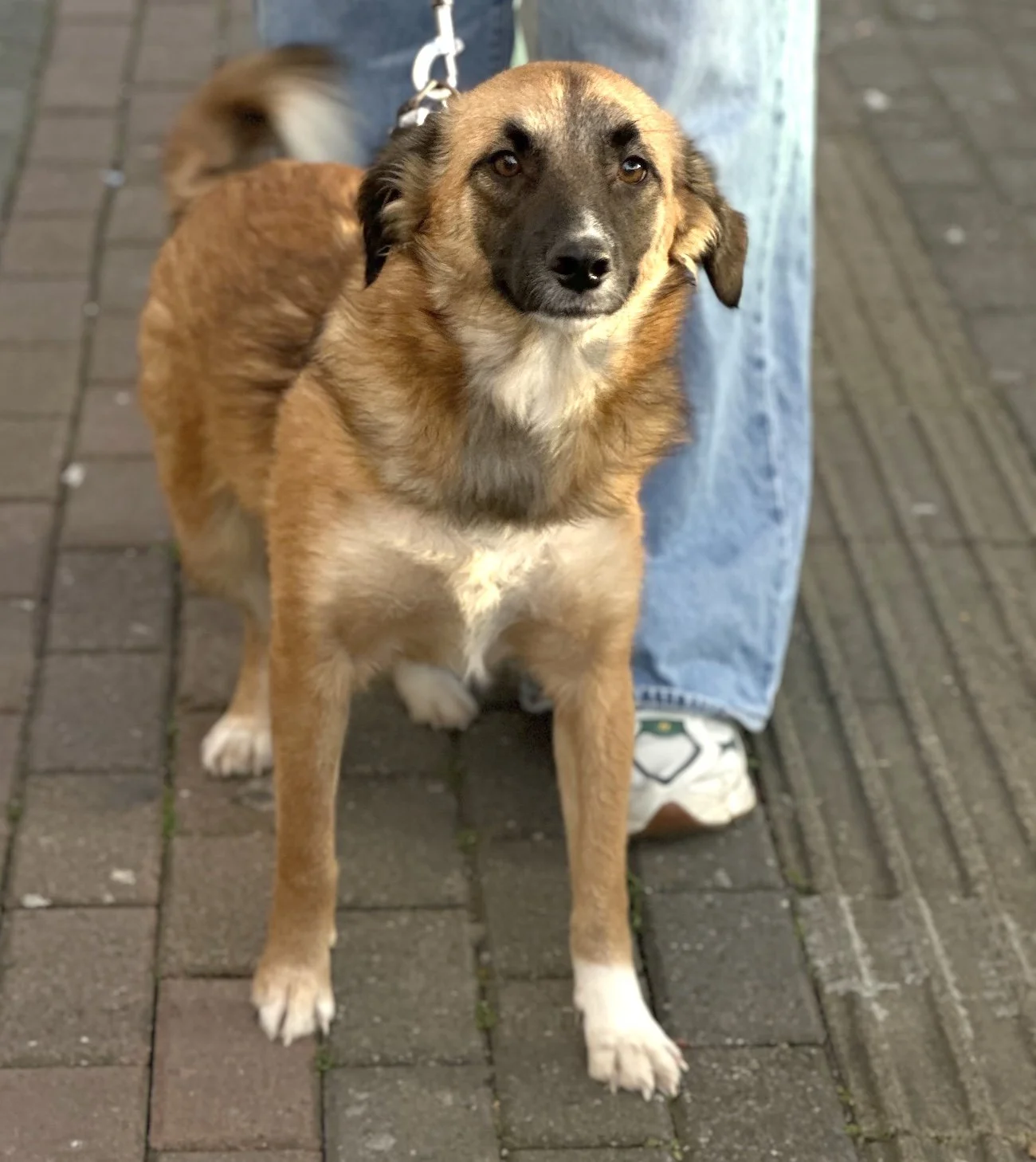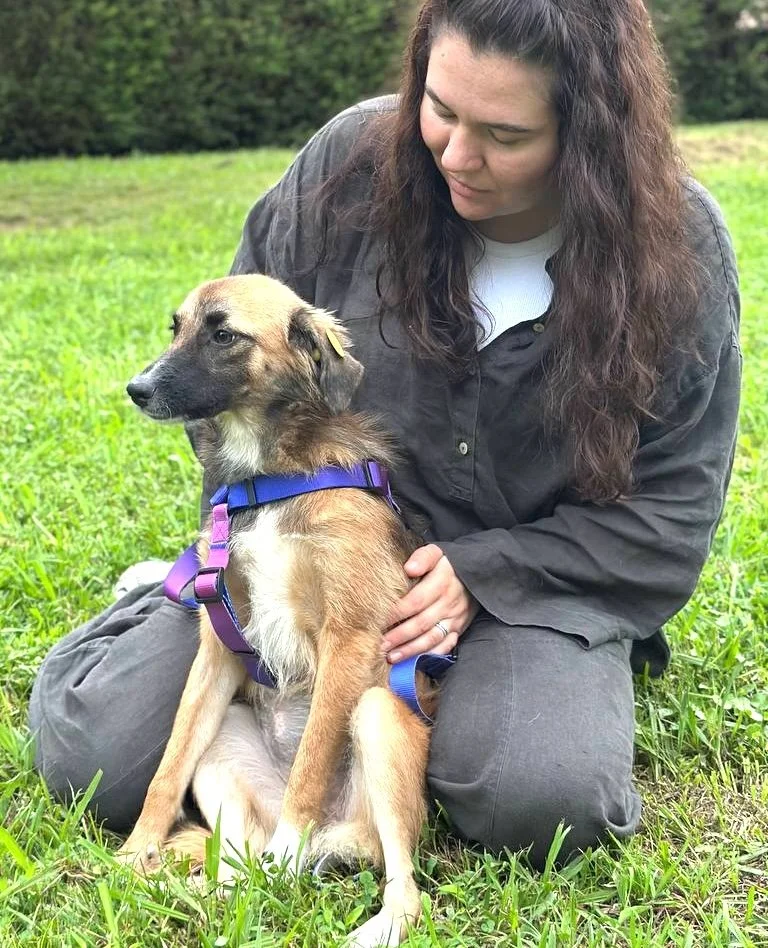 Vivi is gentle and beautiful. She adores attention, affection, and being close to her humans. She’s friendly with everyone she meets and happily asks for pets or treats. She walks nicely on a leash, staying close without pulling.